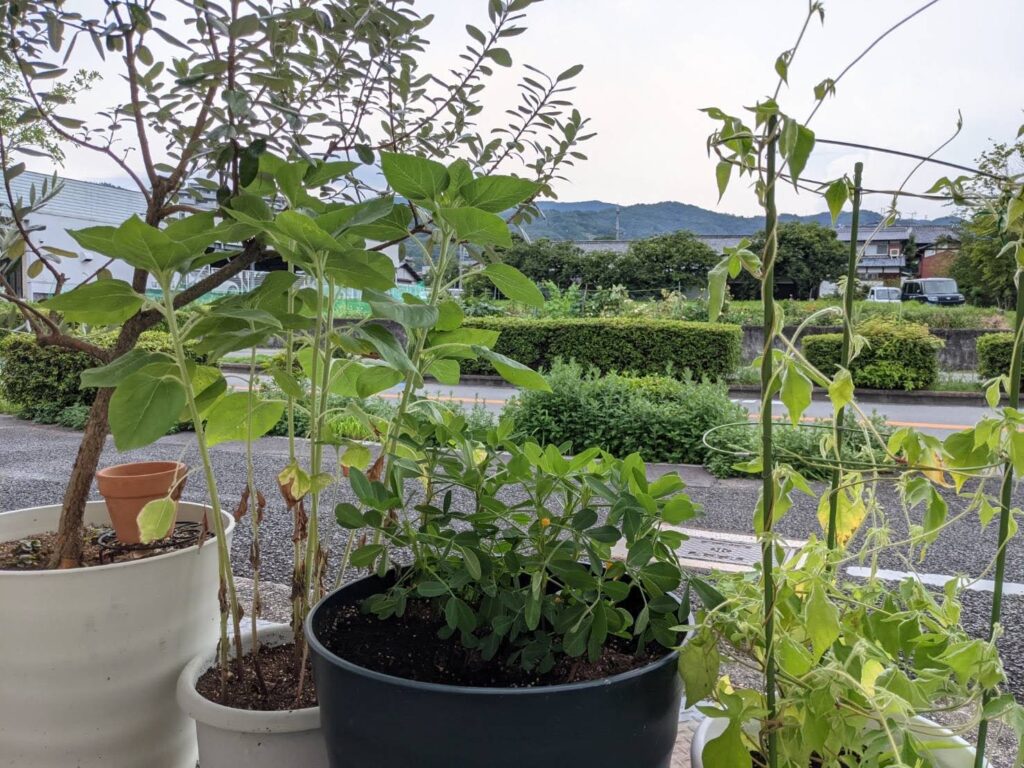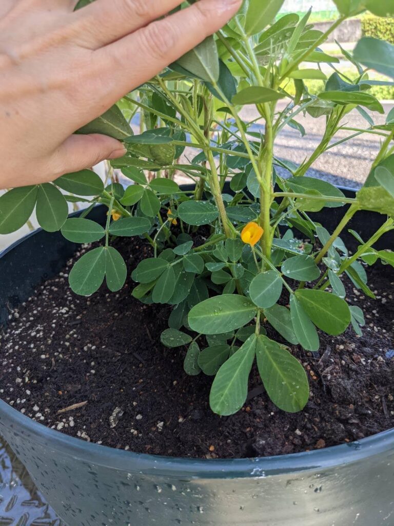 店の前にある大きな植木鉢に今年は落花生を植えてみました!