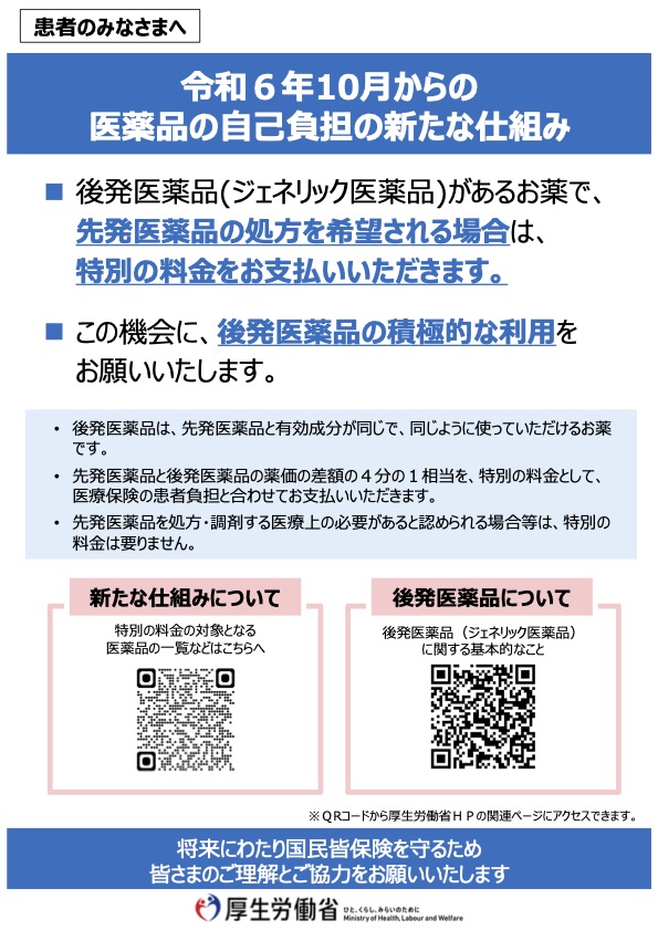 なお、明細書には薬剤の名称が記載されるものですので、その点ご理解いただき、ご家族の方が代理で会計を行う場合のその代理の方への発行も含めて、明細書の発行を希望されない方は、会計窓口にてその旨お申し出下さい。