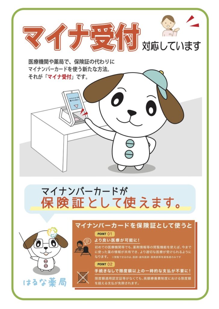 ・オンライン資格確認を行う体制を有しており、患者さまの薬剤情報、特定健診情報その他必要な情報を取得・活用して、より適切な調剤等に取り組んでいます